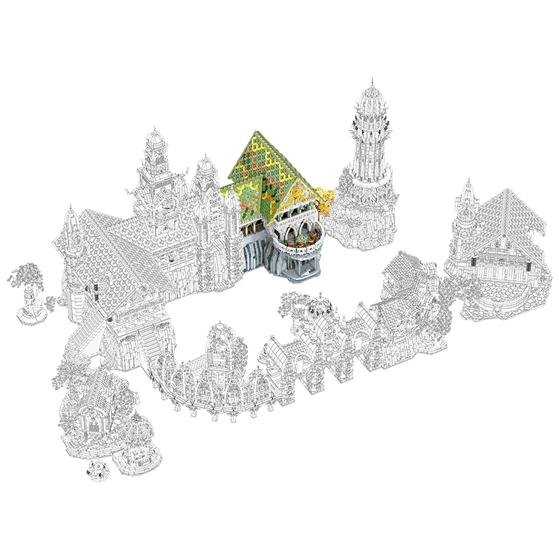 For those who dream of stepping into Middle-earth, the Rivendell Street Scene Series is the perfect way to bring the beauty of Tolkien’s world into your home. This stunning brick-building collection is inspired by The Lord of the Rings and consists of nine interconnected sections, forming an awe-inspiring Rivendell-inspired street scene that captures the elegance and grandeur of the Elven realm.